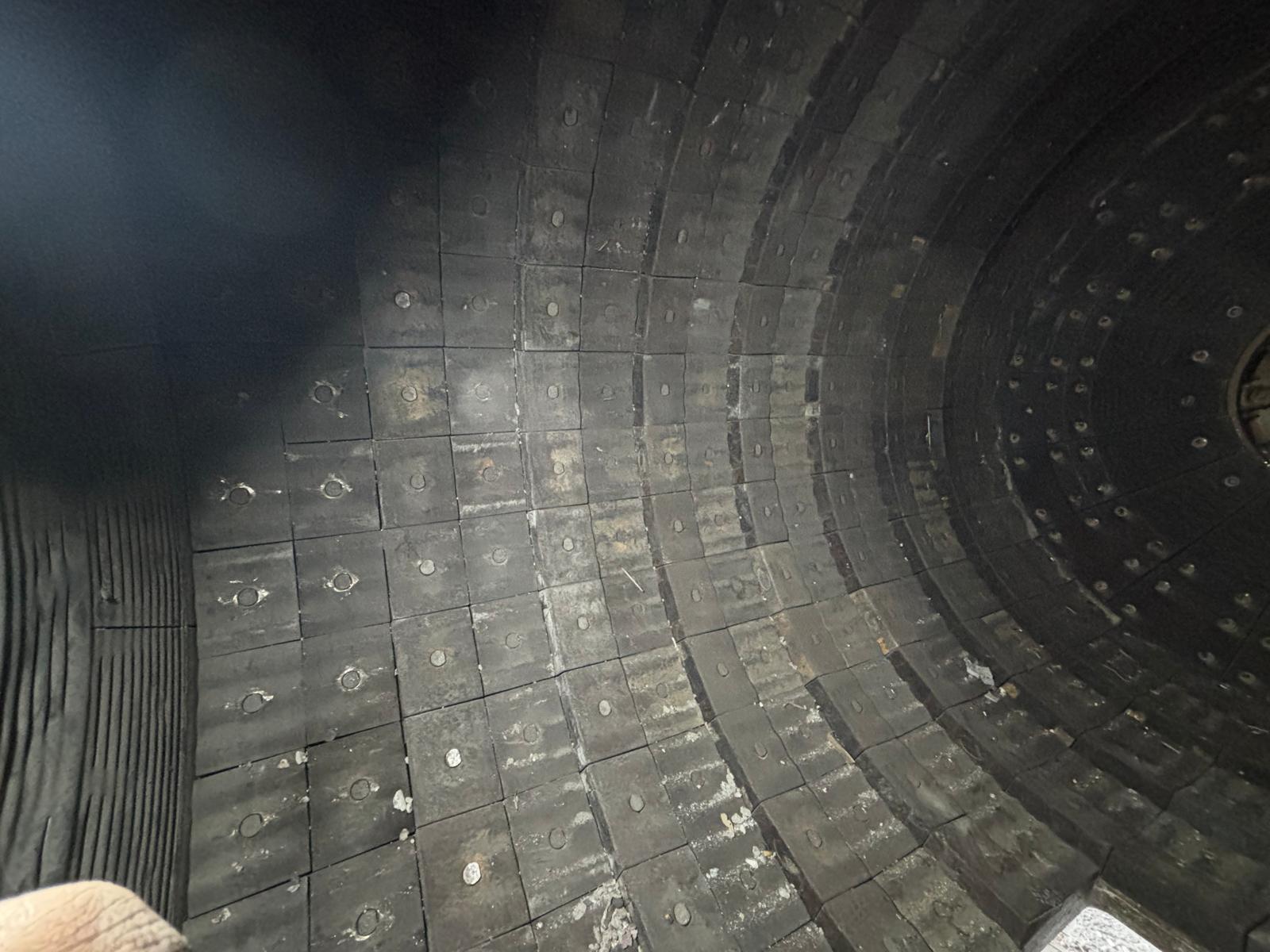 Montaggio nuova corazzatura testata di carico e testata di scarico molino calce. Presso stabilimento di Schio.